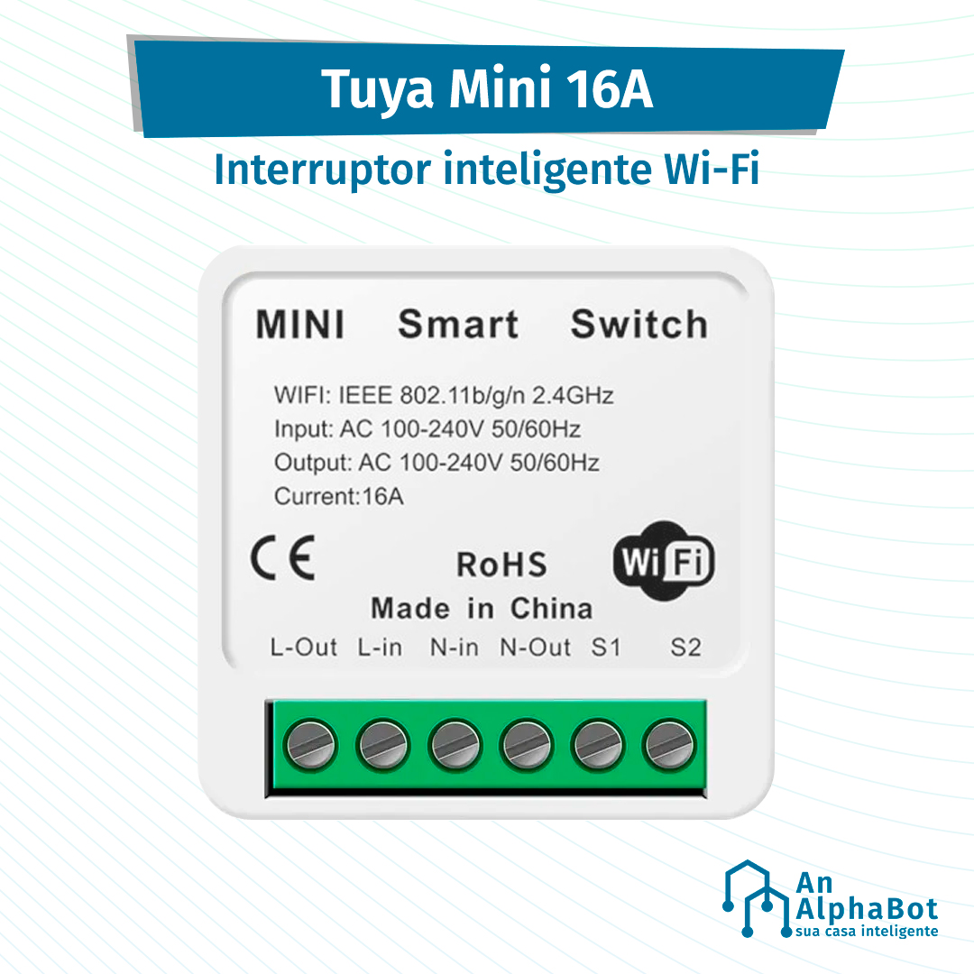 O Tuya Mini 16A é um relé Wi-Fi utilizado para acionar remotamente pela internet equipamentos eletro-eletrônicos como lâmpadas, ventiladores e outros. Muito utilizado para automação residencial devido a sua simplicidade, praticidade e ótimo custo benefício.